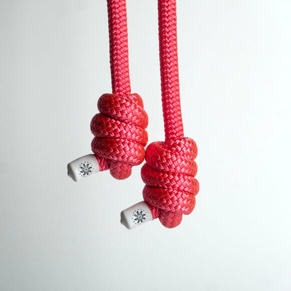The rope has a coral pink construction with white fitted caps.